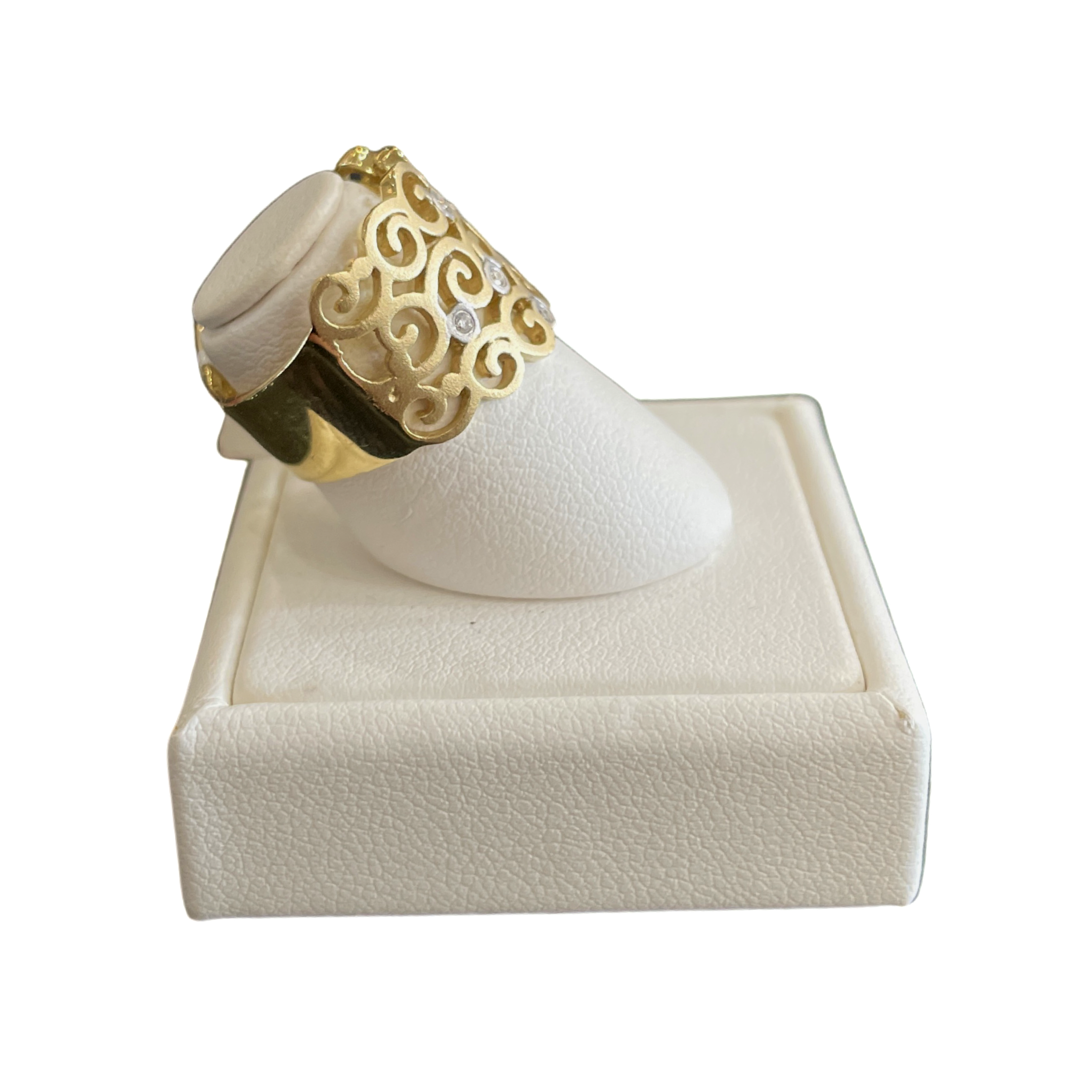 14k Yellow Brushed Gold Filigree & Diamond Ring RG12684D