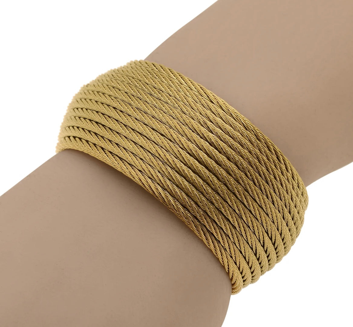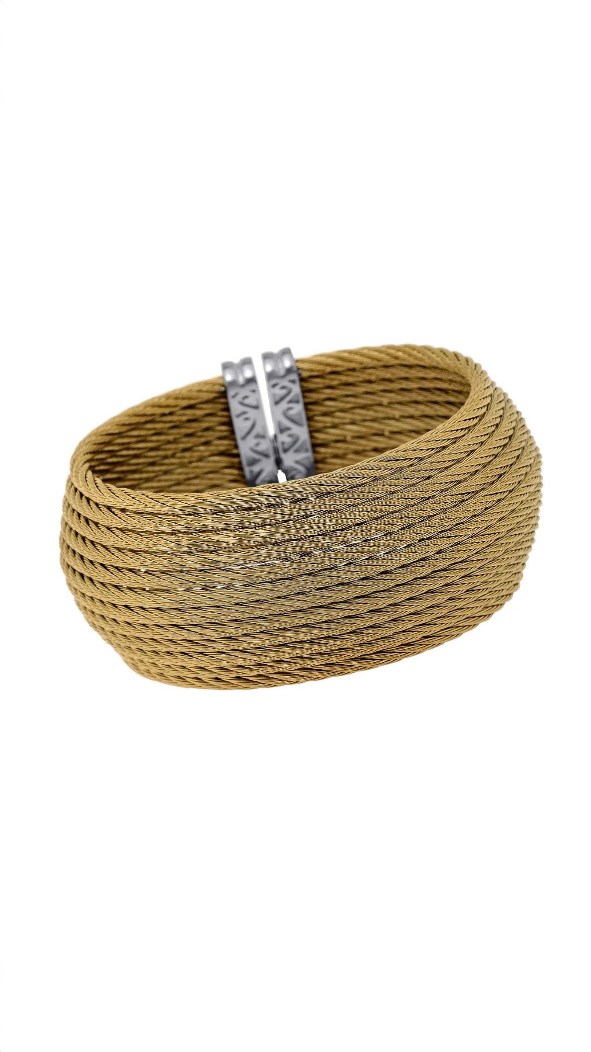 18K YELLOW GOLD + STAINLESS STEEL WIDE CABLE BRACELET BY ALOR