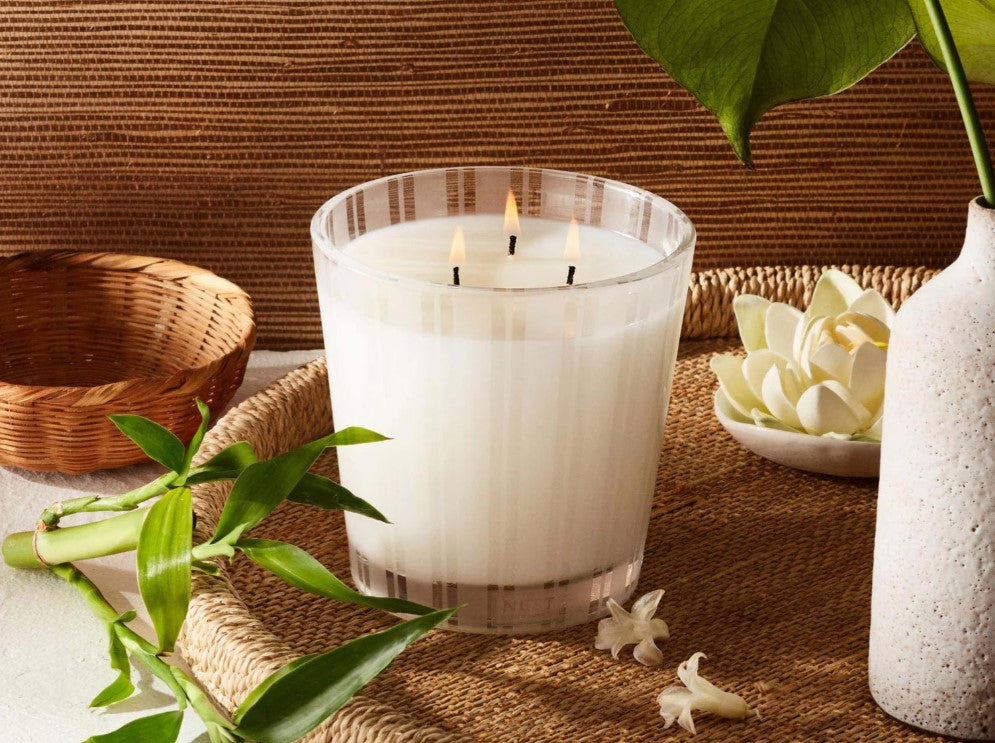 Elevate your sensory experience with the luxurious NEST 3 Wick 21.1 oz Candle. Crafted with meticulous attention to detail, this exquisite candle is available in captivating fragrances including Himalayan Salt & Rosewater, Bamboo, Grapefruit, and Indian Jasmine. Encased in a beautifully designed glass vessel, each candle promises to deliver an indulgent multi-sensory ambiance that transforms any space into a serene oasis of tranquility and elegance. The premium wax blend ensures a clean, even burn while the sophisticated aroma creates a lasting impression, making this candle a perfect addition to your home decor or as a sumptuous gift for a loved one.
