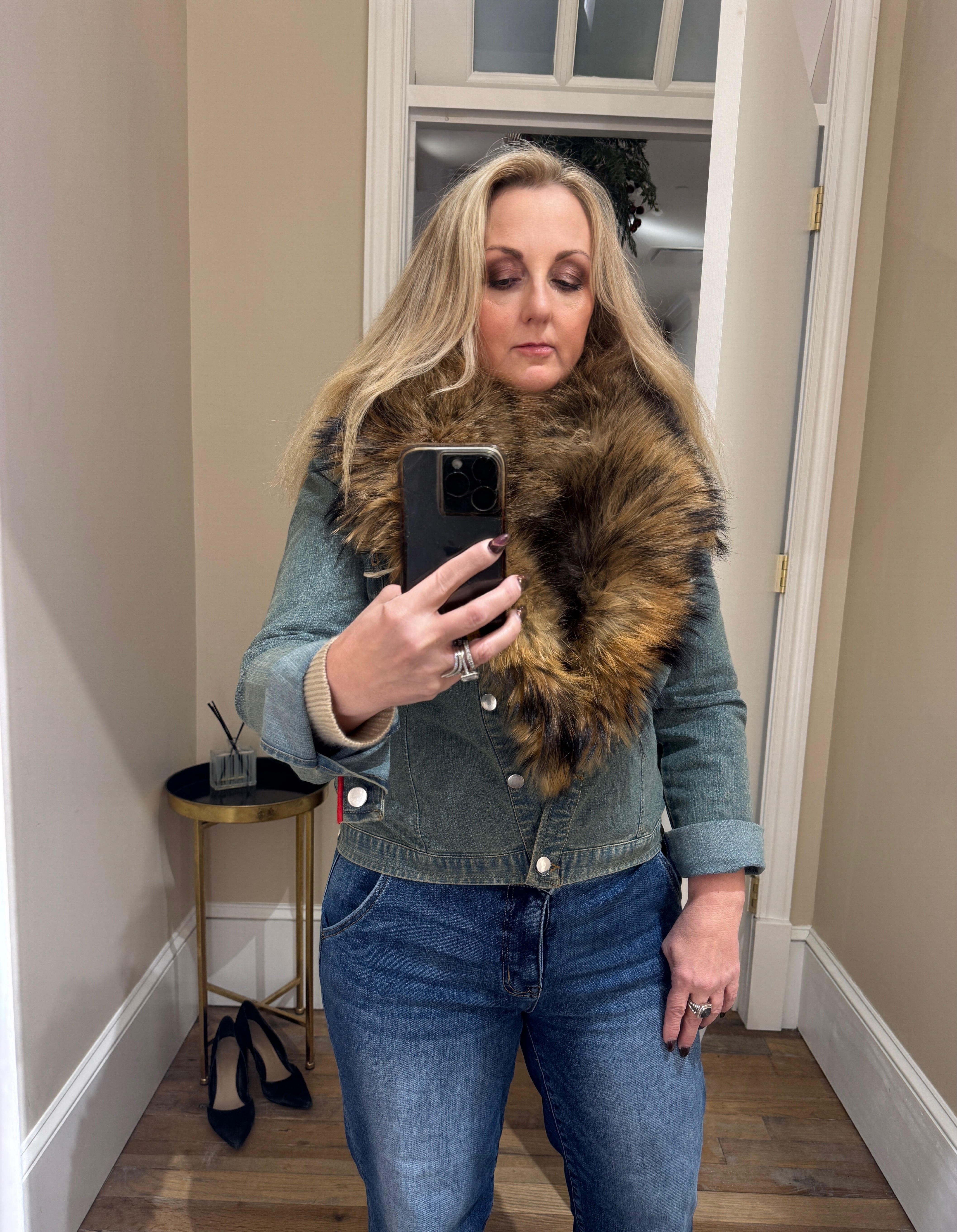 Transform any outfit with effortless elegance using this genuine fur collar , available at Luxe Levels Boutique. Crafted from full, rich fox fur, this versatile accessory Velcros easily onto any shawl, coat, or jacket for an instant touch of sophistication. It drapes beautifully for polished, timeless style.