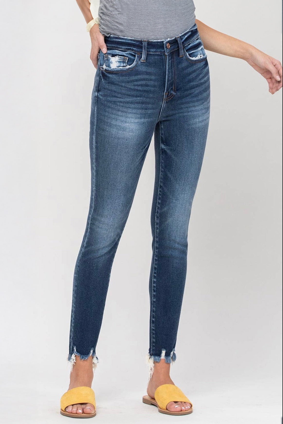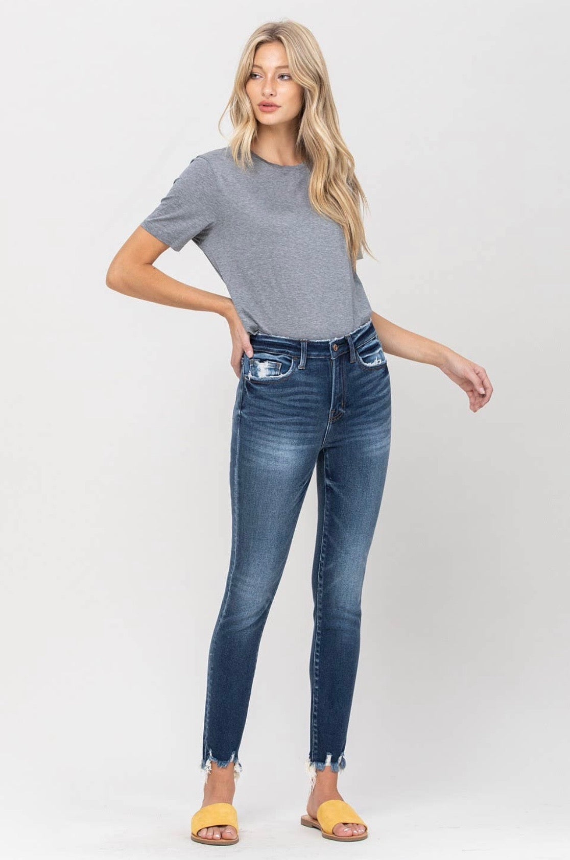 DISTRESSED ANKLE CROP BLUE JEANS WITH FRAY HEM BY FLYING MONKEY FLYBB026-17