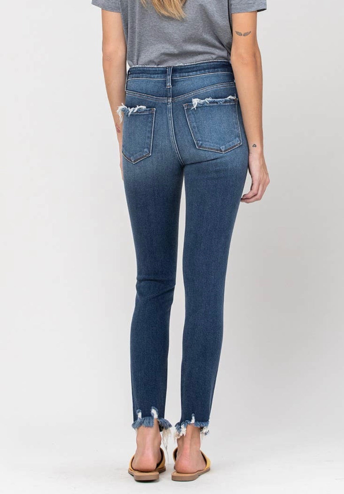 Craft an edgy yet chic look with the Distressed Ankle Crop Blue Jeans with Fray Hem by Flying Monkey. These jeans perfectly balance rugged appeal and contemporary style with a flattering fit that’s both versatile and comfortable.