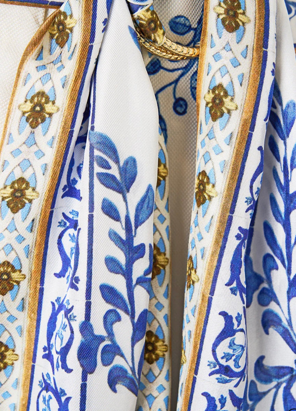 BLUE & WHITE LINEN EMBELLISHED JACKET BY CAMILLA CAM0348