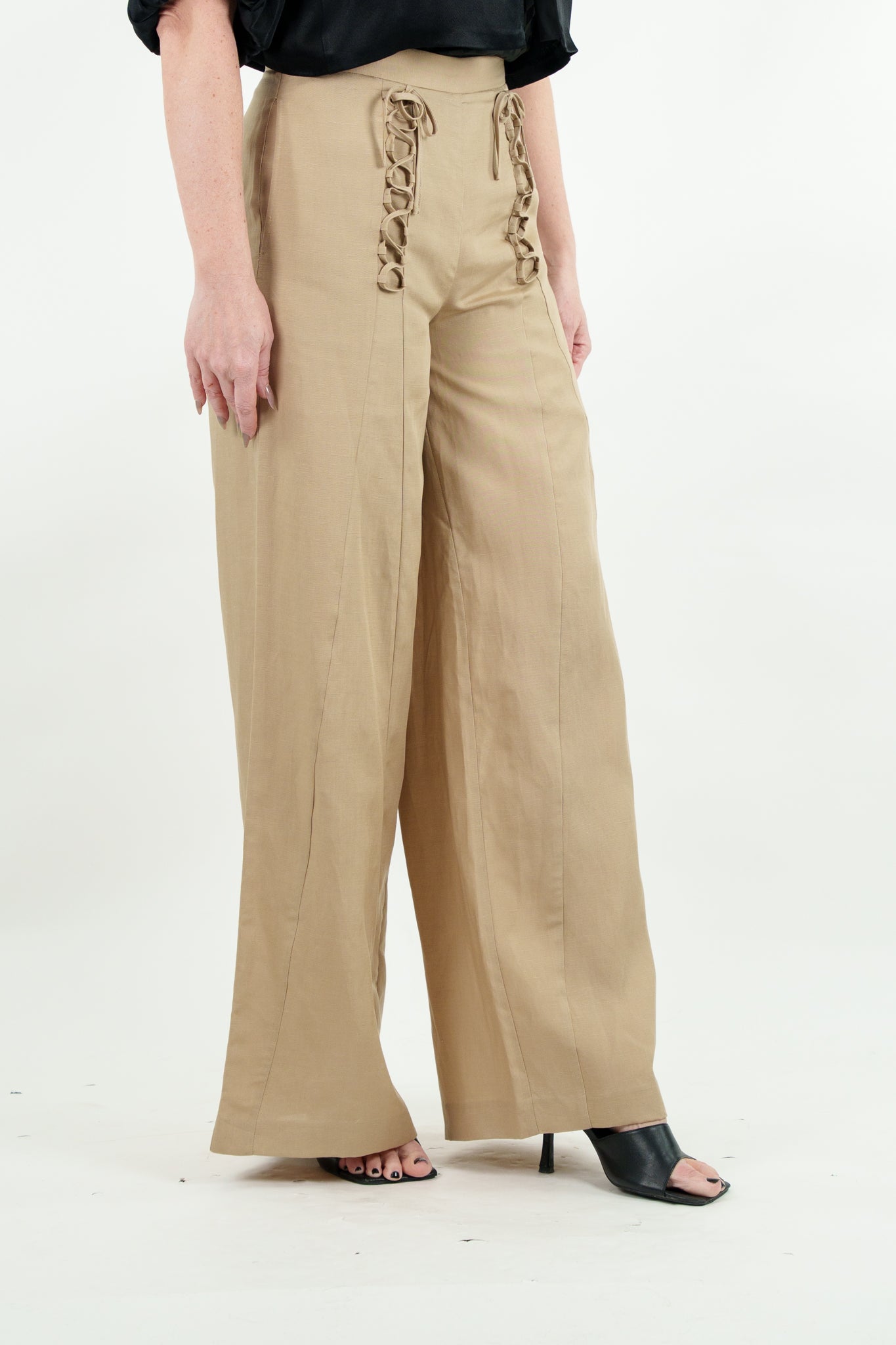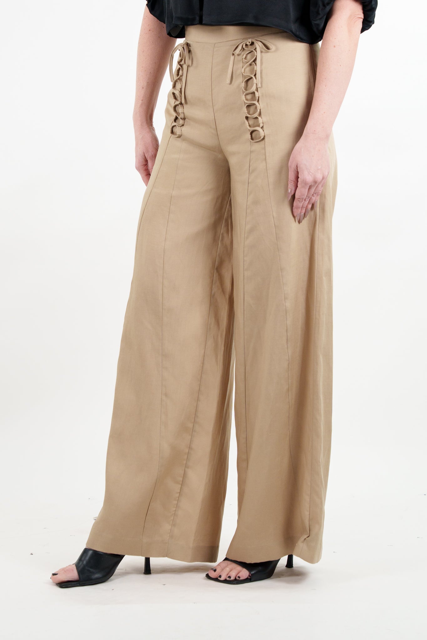 LACE UP ITALIAN LINEN PANTALONE by TWINSET MILANO TS25120710100