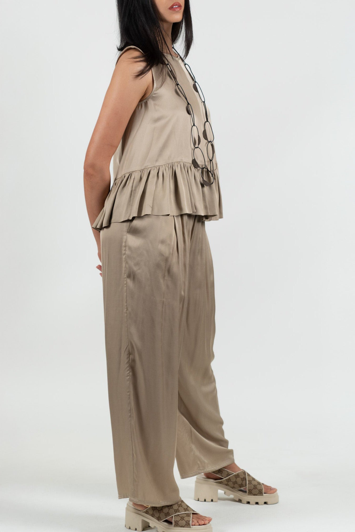 GOLD SILKY WIDE LEG FRENCH PANTS BY LES FILLES LF35300141-5