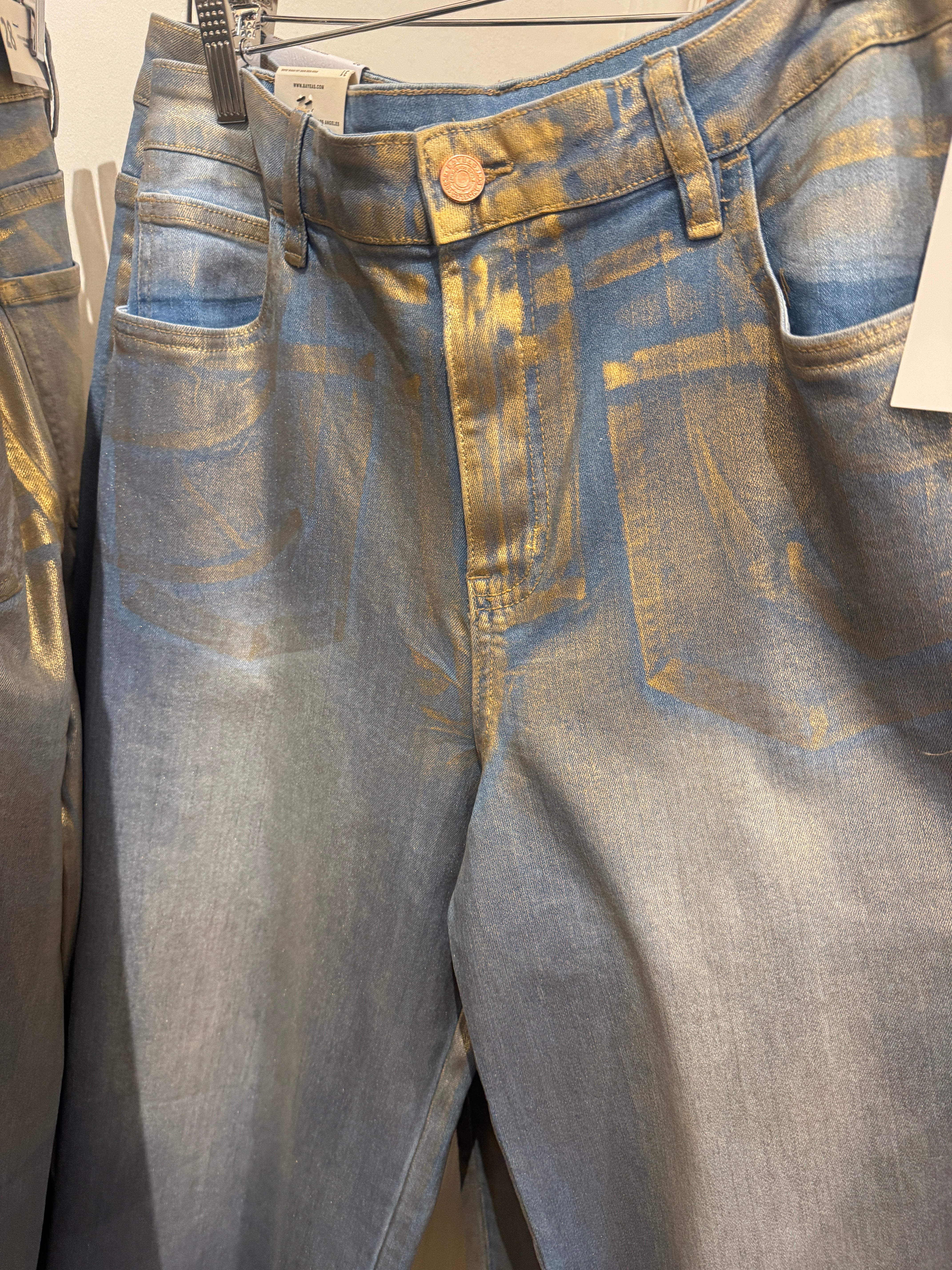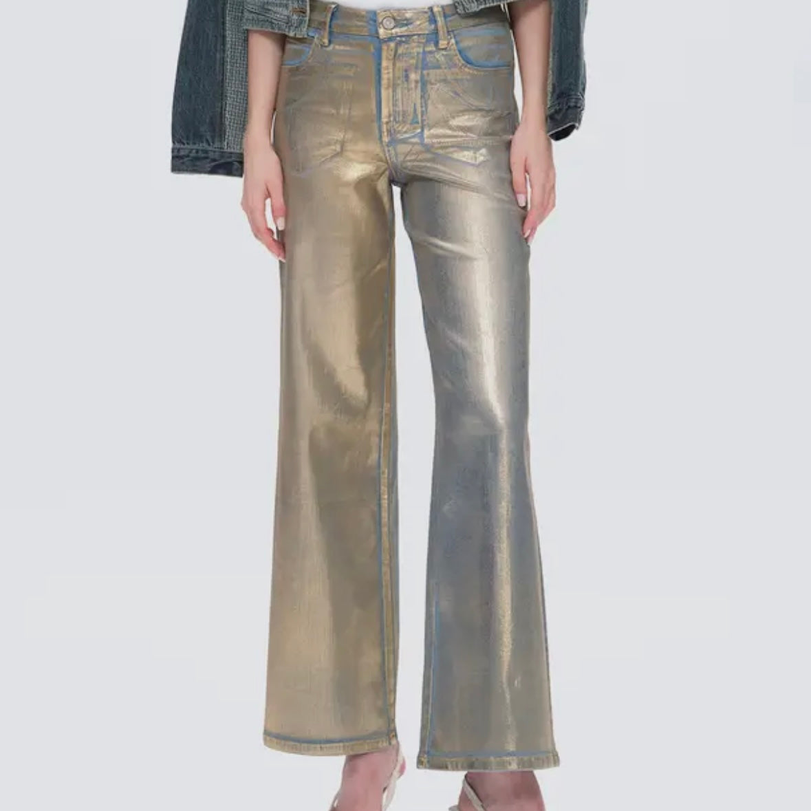 High Rise Wide Leg Metallic Denim Jeans GJ765030