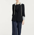 Be ready for any occasion in the Hooded Khloe Blazer. Crafted with Drapey Crepe, a french terry underlay, and a drawstring hood, it's designed to flatter your silhouette. The hood and stylized sleeves add a touch of unique style. Stand out—make a statement in the Hooded Khloe Blazer.