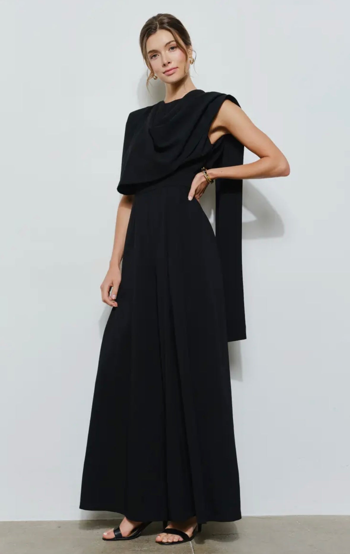 Sleeveless Draped Scarf-Neck Jumpsuit by INA IN44035-5