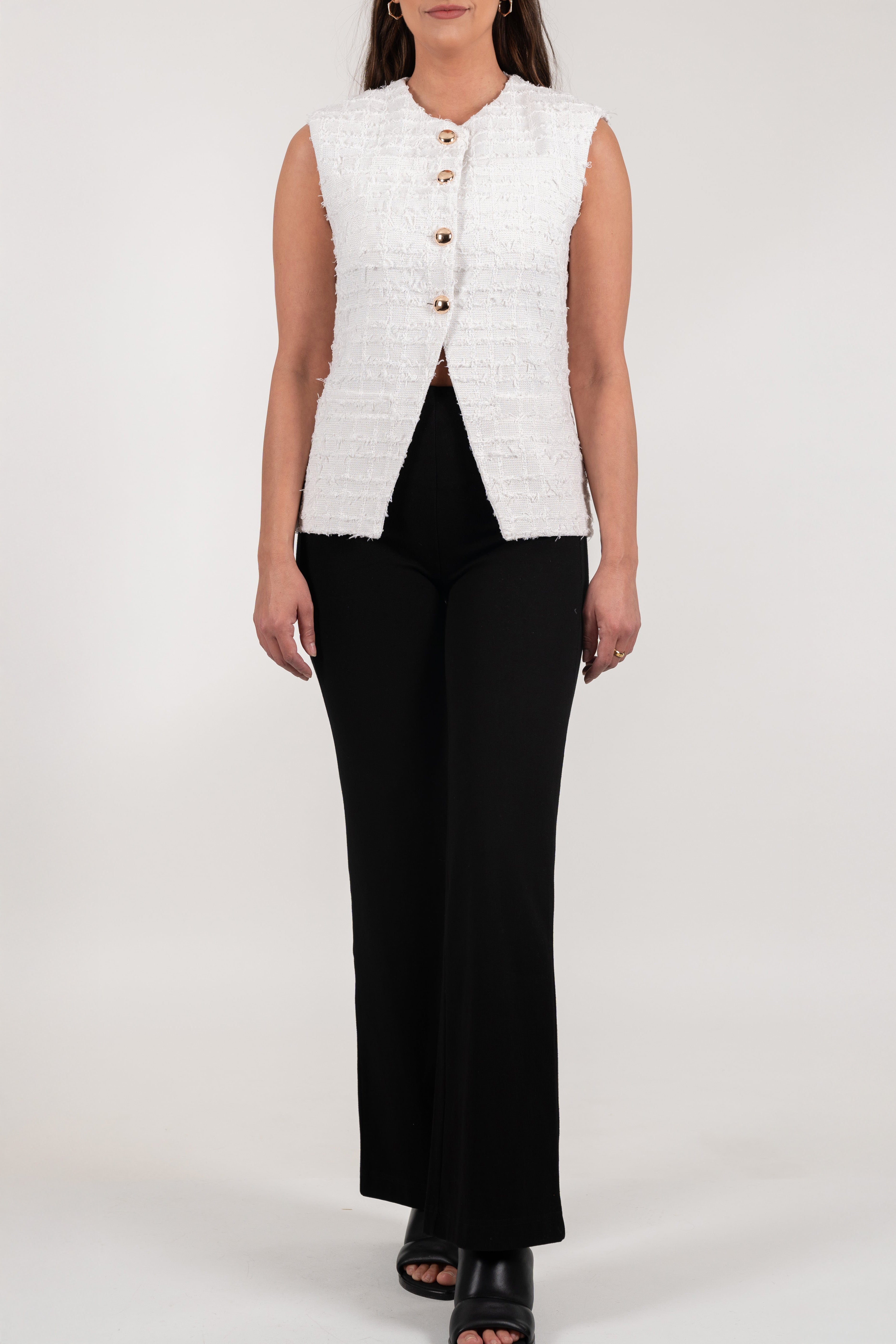 Crafted with both sophistication and comfort in mind, these wide-leg stretch denim pants feature a sleek black hue that complements any wardrobe. Designed to effortlessly elongate the legs, their high-quality stretch fabric offers both a flattering fit and superior comfort. The minimalist design, accentuated by impeccable tailoring, makes these pants a versatile staple for any elegant ensemble, perfect for both professional settings and chic evening outings. Experience understated luxury and timeless style with this versatile piece.