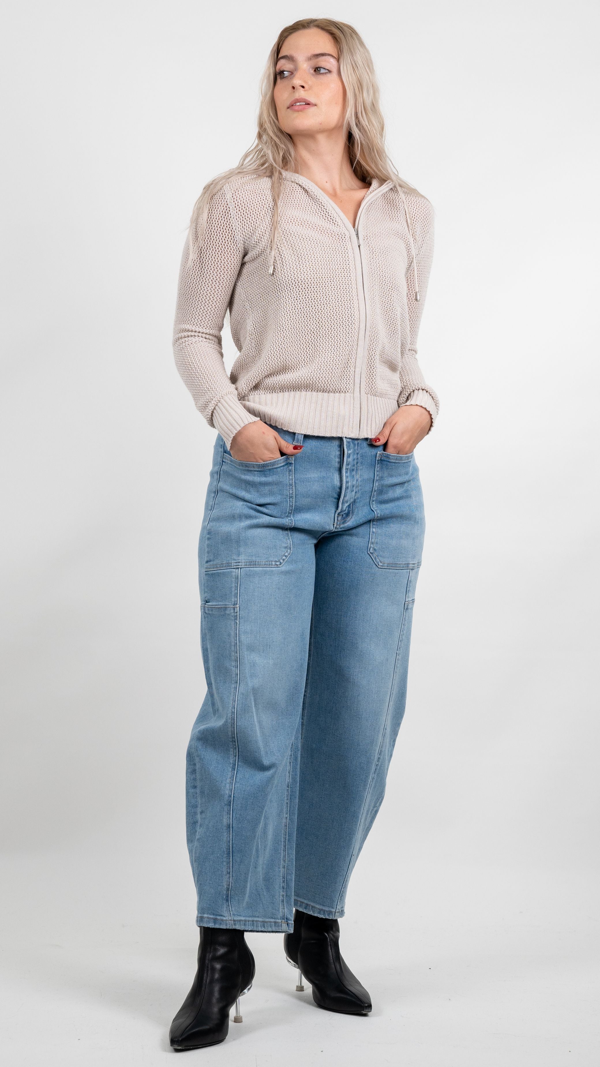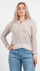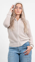 Latte Mesh Zip Hoodie w/ Lurex by LUXE LEVELS LL491084LT