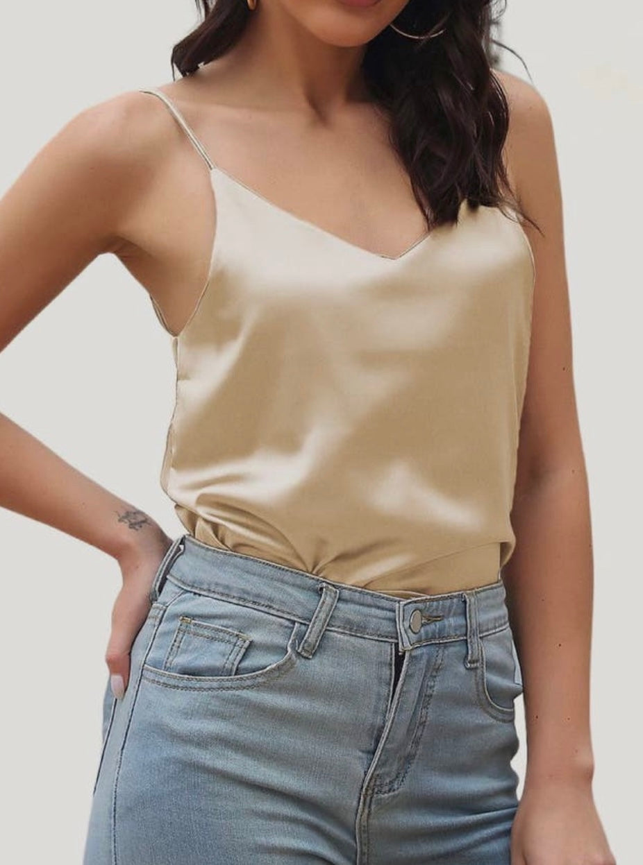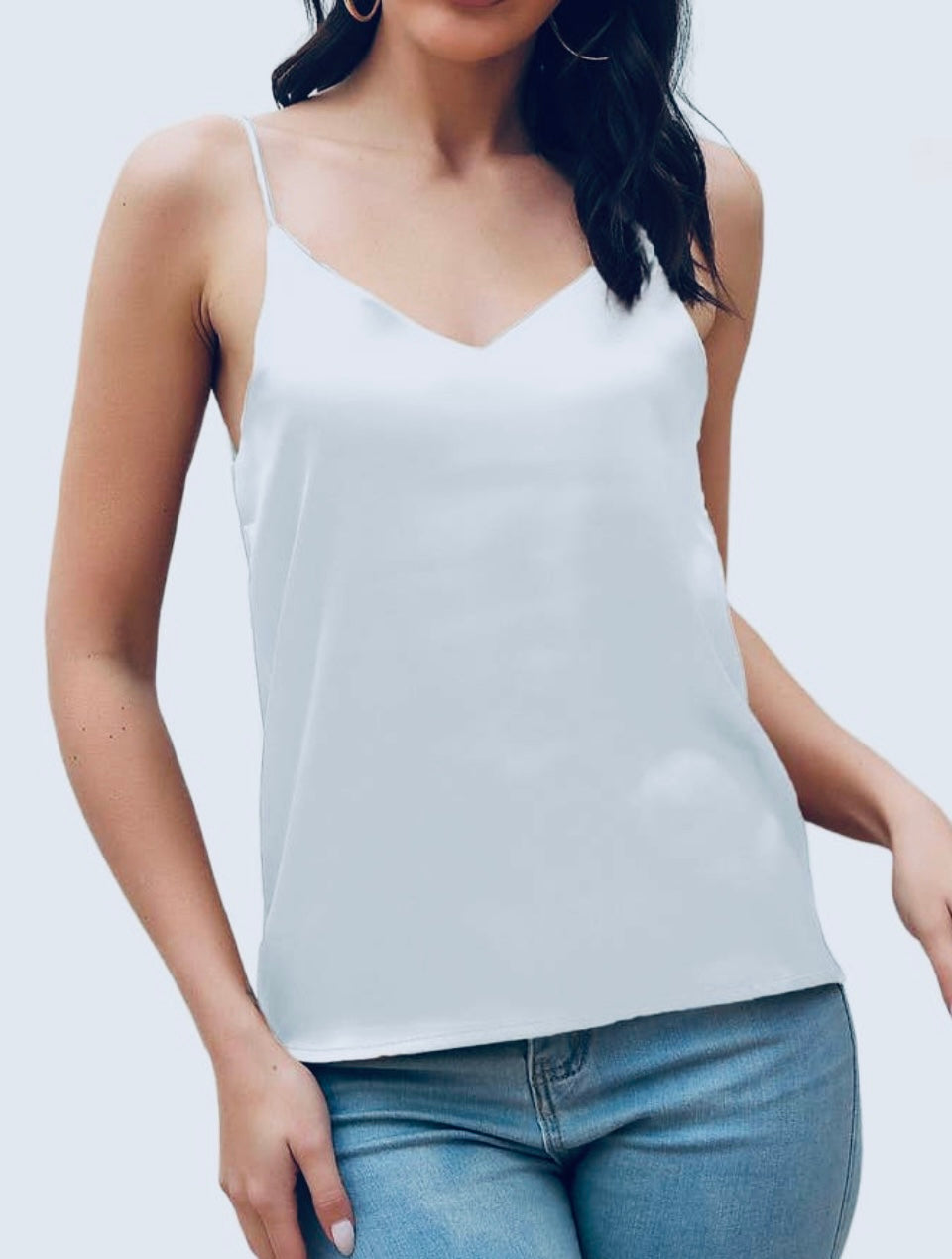 Elevate your wardrobe with the luxurious Spaghetti Strap V-Neck Cami, a versatile masterpiece crafted from high-quality satin fabric that exudes elegance and sophistication. Available in stunning shades of emerald, white, and cream, this sleek cami features delicate spaghetti straps and a flattering V-neckline, offering a timeless silhouette that seamlessly transitions from day to night. Paired effortlessly with jeans for a chic casual look or with a skirt for an evening out, this cami is an essential addition to any fashion-forward collection.